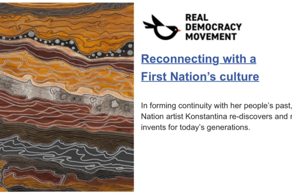 Onespace is delighted to announce the representation of Konstantina (Kate Constantine). Konstantina is a proud Gadigal woman of the Eora Nation and a contemporary First Nations artist. Her practice reinterprets the traditional visual practices of her people, forging a modern narrative and asserting First Nations perspectives as central to Australia’s cultural landscape.